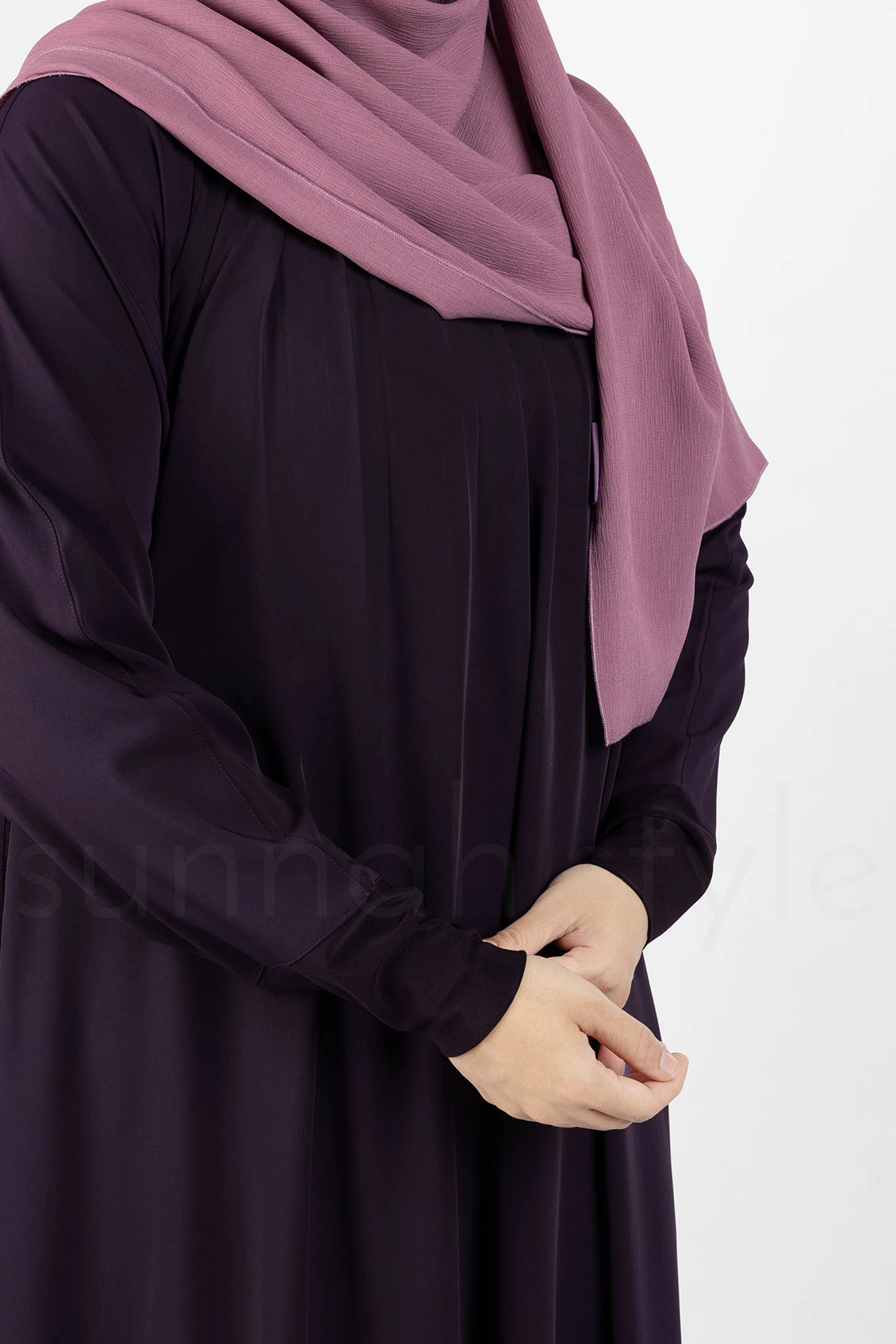 The Sunnah Style Simplicity Umbrella Abaya is designed with a stunning princess cut for a modest and flowing fit. This abaya features a pleated neck with a diagonal zipper from the shoulder to the underarm to accommodate nursing mothers. It also includes zippered side pockets for conveniently storing your phone, keys and other necessities.